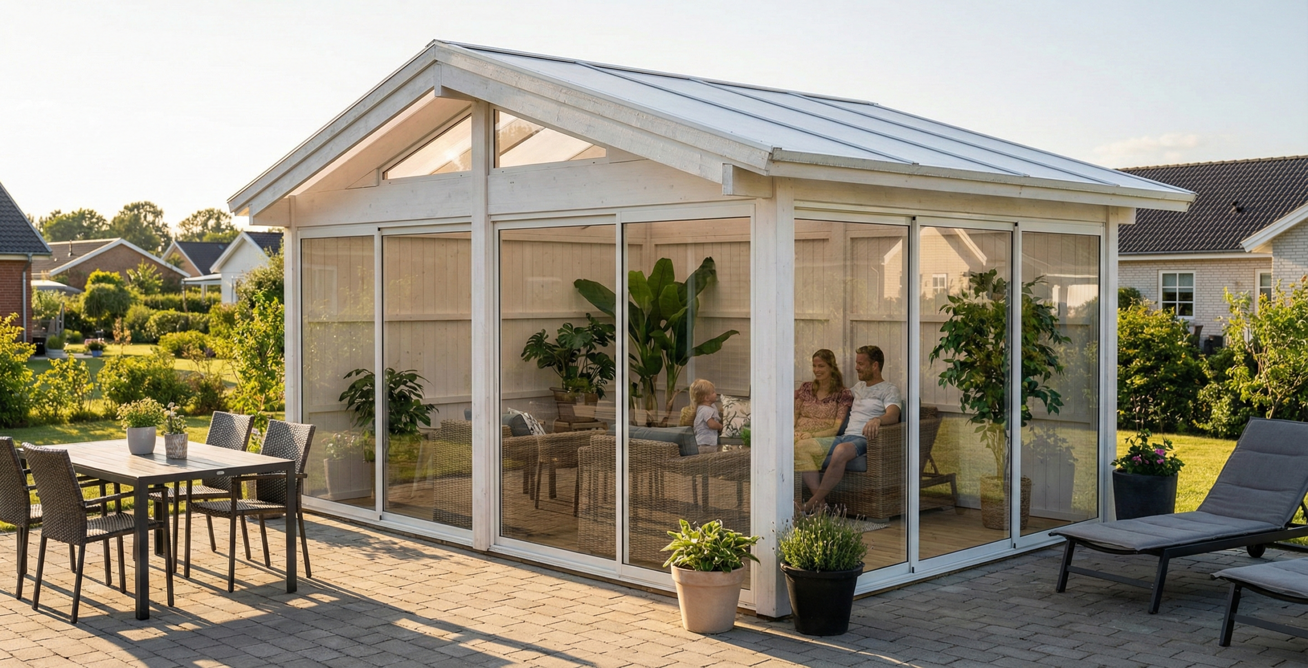 Færder 16,1 m² passer perfekt for deg som ønsker en romslig, moderne og vedlikeholdsvennlig hagestue med store åpninger og mye lysinnslipp. Den fungerer like godt som spiseplass, avslapningsrom, lysthus eller sosial sone – og gir deg følelsen av å være ute, selv når været sier noe annet.