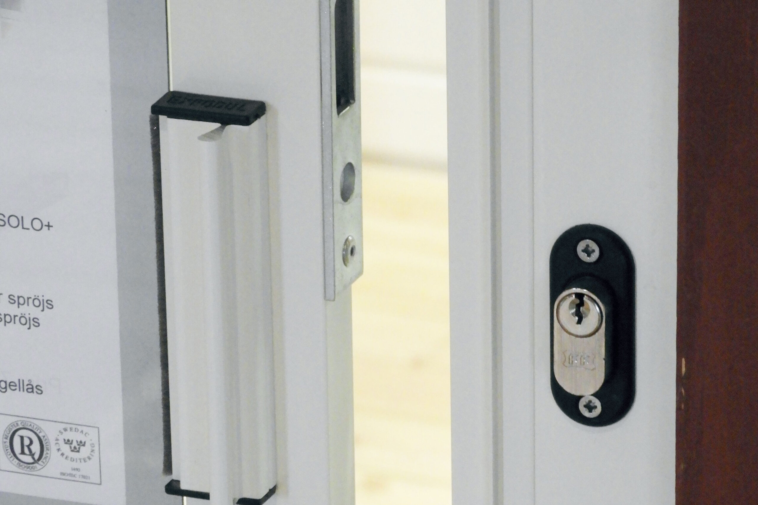 Alle skyvedørene kan låses fra innsiden med våre trygge og enkle klemlåser. I tillegg utstyrer vi en av skyvedørene med innvendig og utvendig sylinderlås med nøkler.