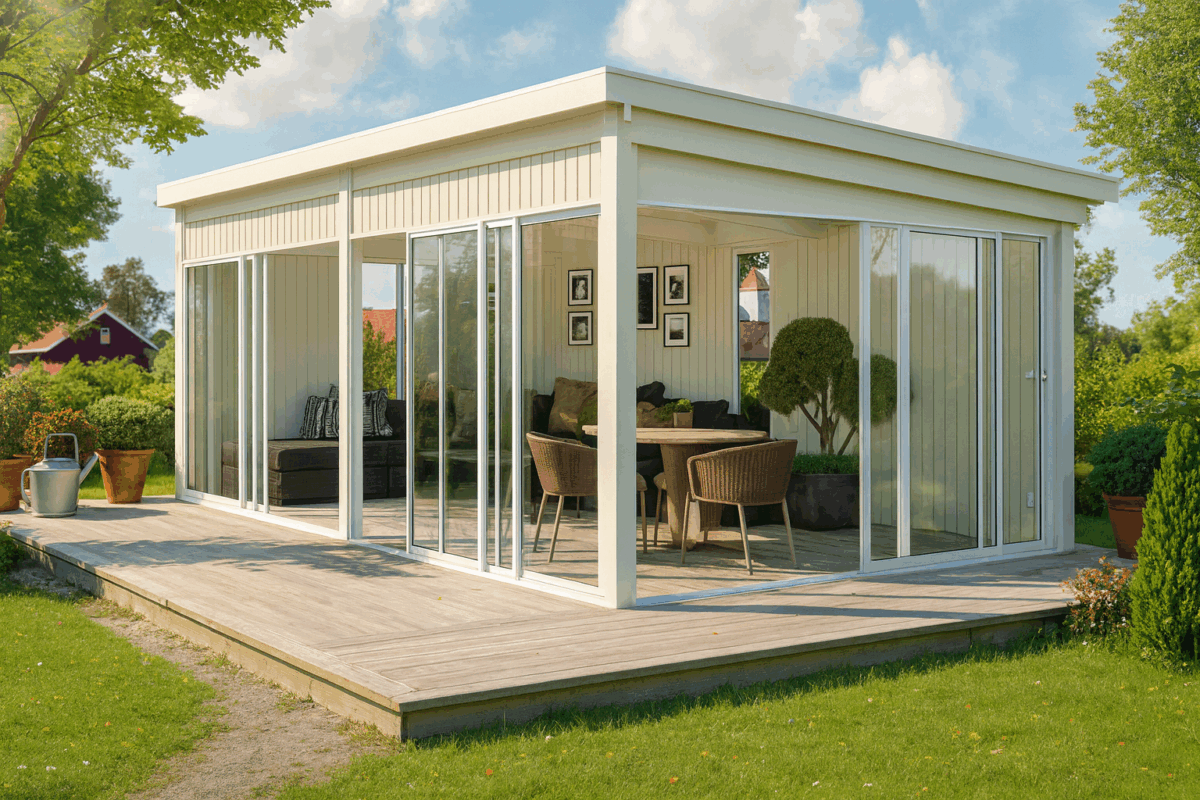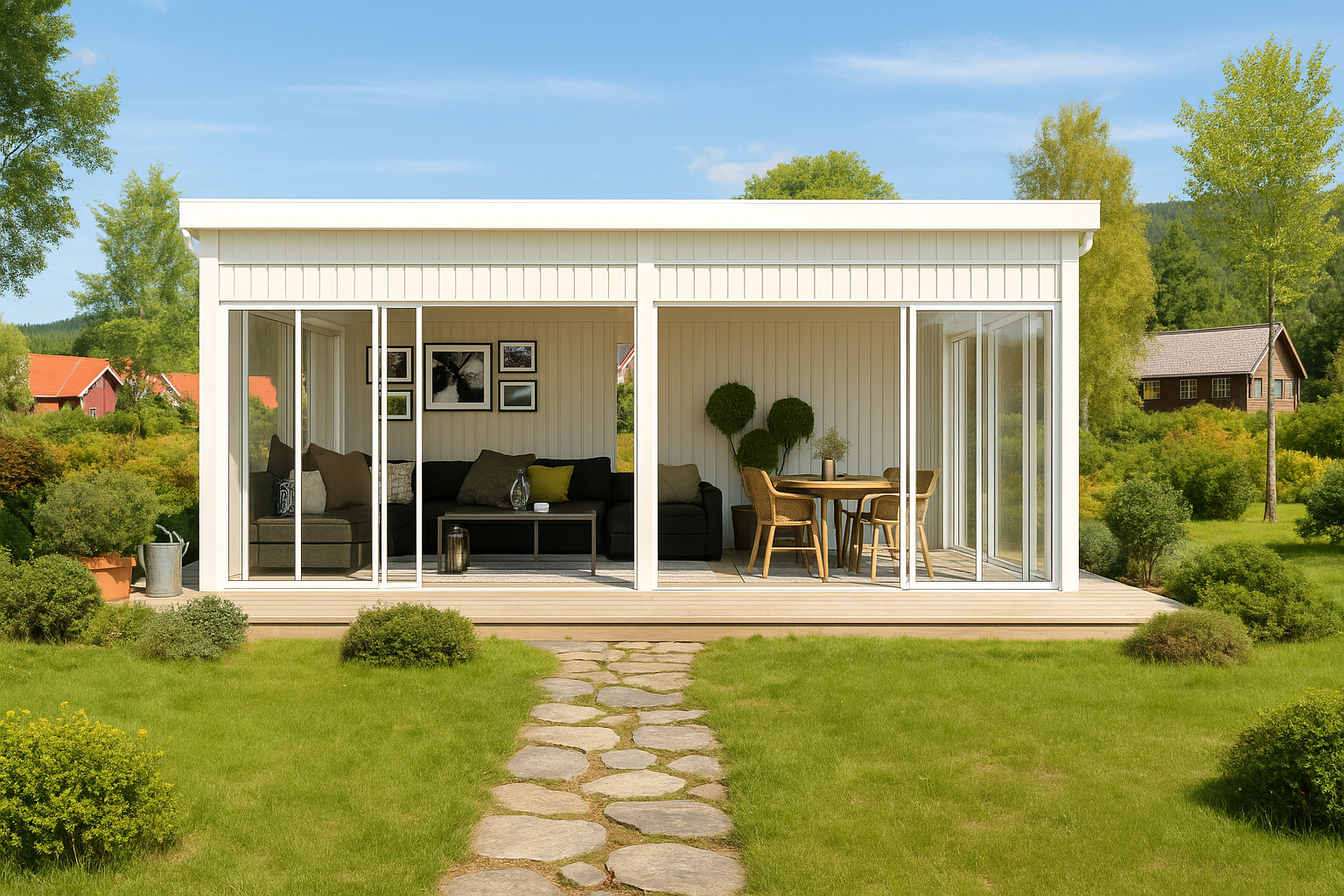 Med sin romslige planløsning og moderne pulttaksdesign gir Røros 20,4 m² deg muligheten til å skape både spiseplass og loungeområde i samme bygg. Denne hagestuen blir raskt et favorittsted for hyggelige måltider, avslapning, selskap og lange sommerkvelder – skjermet fra vind og vær.